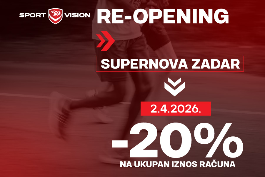 Preuređena Sport Vision trgovina svoja vrata otvara 2. travnja, a povodom ponovnog otvorenja očekuje te -20% popusta na ukupan iznos računa! Iskoristi priliku i ulovi omiljene komade po odličnim cijenama.