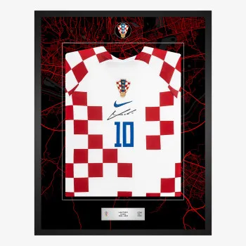 Potpisan od strane Luke Modrića, ovaj domaći dres Hrvatske za sezonu 2022-23 ima grb države reproduciran u uzorku šahovnice na tkanini. Prednja strana dresa odabrana je za izlaganje. Modrićev potpis nalazi se u središtu dresa, između njegovog broja i Nikeovog loga.